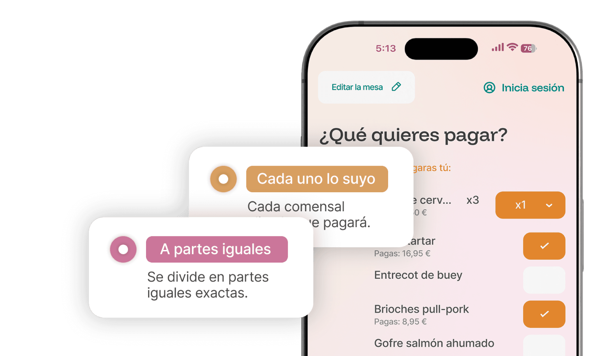 Total libertad y flexibilidad para elegir qué pagar, el método de pago y tener completo control de la gestión de la mesa.
